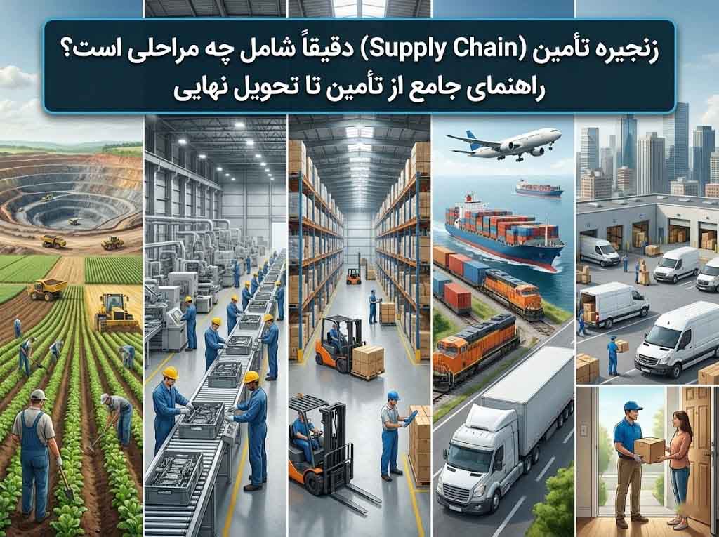 زنجیره تأمین (Supply Chain) دقیقاً شامل چه مراحلی است؟ راهنمای جامع از تأمین تا تحویل نهایی